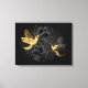 Schmuck aus schwarzem und goldenem Schmuck, der mit grauem Hintergrund und Pflanze geschmückt ist. Schmuckvögel. Goldener Vogel. Goldvogel.