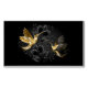 Schmuck aus schwarzem und goldenem Schmuck, der mit grauem Hintergrund und Pflanze geschmückt ist. Schmuckvögel. Goldener Vogel. Goldvogel.