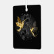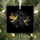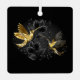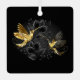 Schmuck aus schwarzem und goldenem Schmuck, der mit grauem Hintergrund und Pflanze geschmückt ist. Schmuckvögel. Goldener Vogel. Goldvogel.