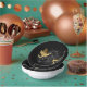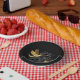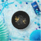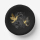 Schmuck aus schwarzem und goldenem Schmuck, der mit grauem Hintergrund und Pflanze geschmückt ist. Schmuckvögel. Goldener Vogel. Goldvogel.