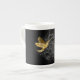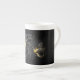 Schmuck aus schwarzem und goldenem Schmuck, der mit grauem Hintergrund und Pflanze geschmückt ist. Schmuckvögel. Goldener Vogel. Goldvogel.