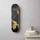 Schmuck aus schwarzem und goldenem Schmuck, der mit grauem Hintergrund und Pflanze geschmückt ist. Schmuckvögel. Goldener Vogel. Goldvogel.