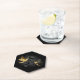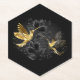 Schmuck aus schwarzem und goldenem Schmuck, der mit grauem Hintergrund und Pflanze geschmückt ist. Schmuckvögel. Goldener Vogel. Goldvogel.