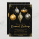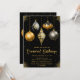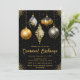 Host a festive and stylish ornament exchange with this luxurious black and gold invitation. This design features a rich black background adorned with shimmering gold accents and five intricately illustrated hanging ornaments, each showcasing floral, snowflake and geometric patterns. This elegant layout sets the tone for a warm and celebratory seasonal gathering. Perfect for holiday swaps, office events or cozy get-togethers with friends and family.