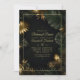 Tropisches Hochzeitsessen Probe Einladung mit Aspekten von Schwarz und Gold.
