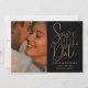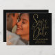 Diese elegante Schwarz-Gold-Script-Hochzeit speichern Sie das Datum Einladung kann mit Ihren 2 besonderen Fotos und Hochzeitstag Informationen personalisiert werden. Entwickelt von Thisisnotme©