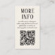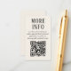 Set für eine moderne Hochzeit, bei der die Gäste Schwarz und Weiß tragen, der Empfang ist in einem Jazz-Club mit Deko, sprechen leichte Bänke, und jeder trinkt Negronis und Trockenmartinis, während er zur Musik einer Jazzband schwingt. Diese Visitenkarte in der Größe einer Visitenkarte dient einer Vielzahl von Zwecken mit einem scannbaren QR-Code, um Gäste auf die Website Ihrer Wahl zu leiten, wo sie ein digitales UAWG einreichen, ein Hotel buchen oder eine Veranstaltungsroute herunterladen können.