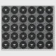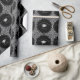 This modern design features a graduation hat and confetti in silver on a background of black with white text.
