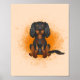 Desteis originelle Cartoon-Illustration einer niedlichen Schwarz-Bein-Farbe Cavalier König Charles Spaniel züchten Hund, der sitzt. Hinter dem Hund ist ein orangefarbener Schlag.