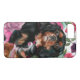 Telefongehäuse mit Black und Tan Cavalier King charles spaniel art design, floral Hintergrund in rosa Farben. Rose, Nelken. Ein großartiges Geschenk für Cavalier Liebhaber. Dog-Telefongehäuse. Verfügbar in mehreren Optionen.