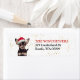 Auf der links Seite dieser Rücksendeadressen-Aufkleber befindet sich ein hübscher, schwarz-bräunlicher Chihuahua-Hund mit einem rot-weißen Hut aus dem Weihnachtsmann. Gold Konfetti gibt Interesse an den Hintergrund. Ihr eigener Text ist rechts rot und schwarz.