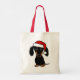 Diese festliche Tote-Tasche verfügt über einen charmanten Cartoon zeichnend von einer schwarz-bräunlichen Dackel mit einer leuchtend roten Weihnachtsmannmütze. Macht ein lustiges Weihnachtsgeschenk für Dackel Hundemütter und Dackel Väter!