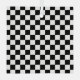 Black and white checkerboard pattern with evenly spaced, alternating squares. The design creates a classic, symmetrical look commonly seen in chessboards.