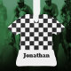 Black and white checks on a Jersey for 2025 Boys Christmas Ornament. Thoughtful gift for sports loving grandchild.