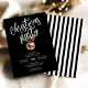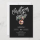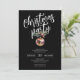 Moderne und festliche Weihnachtsfeier-Party Einladung mit fett handgeschriebenem "Weihnachtsgeschenk" und einer Aquarelldisco, die an einem Kiefernarm hängt. Nachfolgend können Sie individuelle Ereignisdetails festlegen. Der Rücken hat ein schwarz-weiß gestreiftes Muster für eine lustige Touch!