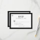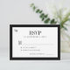 Timeless modern retro vintage elegant luxury old money black and white wedding RSVP card with stylish formal typography and bride and groom's monogram initials.