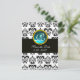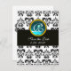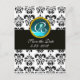 BLACK AND WHITE DAMASK Blue Aquamarine Monogramm Ankündigungspostkarte