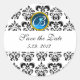 BLACK AND WHITE DAMASK MONOGRAM blauer Saphir Runder Aufkleber