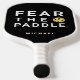 For the serious pickleball player. 'FEAR THE PADDLE' pickleball paddle in black and white. This pickleball paddle features a cool and fun saying, possibly a terrifying sight for your opponent! This pickleball paddle is easily personalized with the inclusion of a name which will appear on the front and back. This is a cool, trendy and fun pickleball paddle which will make the ideal gift for the pickleball loving man in your life. An ideal gift for any time of the year and for any occasion.