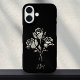 It looks like these roses have been stamped on to a black phone case, just in reverse colors. This is a striking beautiful monochromatic black and white phone cover with a grunge gothic aesthetic. You can easily customize your initials, or remove them for a more minimal look.