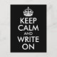 Black and White Keep Calm and Write On Postkarte