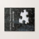 Jigsaw puzzles are family fun and this one becomes a puzzle within a puzzle. Enjoy this one adorned with a close up fotograph of a black jigsaw puzzle segment with hints of blue and one missing puzzle piece. Click Customize it! to remove or change the text and you can select a stil, size and color you like.