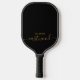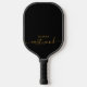 A modern minimalist monogrammed pickleball paddle design featuring a black script and sans serif typography, on a white background.