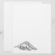 This stationary is sketched in pencil. It signifies peace, stillness, strength and beauty with a mountain and valley, cabin, and trees. Mountains portray a spirit of graciousness and they emulate a majestic vibe.
