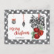 Send heartfelt holiday wishes with this stylish Vichy Chic Noël postcard. Featuring a modern black-and-white gingham border, festive red jingle bells, striped ribbon, and hanging ornaments, this charming design brings cozy farmhouse elegance to your Christmas greetings. Personalize the back with your message or details for a simple yet memorable seasonal touch.