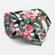 Black and White Plaid With Leafy Pink Camellias Krawatte