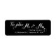 Ein einfaches, elegantes, modernes Schwarz-Weiß-Adressetikett für die Zukunft von Mr. und Mrs. in schöner Schrift Typografie Elegante Rücksendeadressen-Aufkleber für Hochzeiten, Brautpartys oder andere Mailings vor Ihrer Hochzeit. Sie können die Hintergrundfarbe unter "Weitere Anpassung" anpassen.