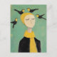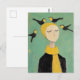 Black and Yellow Birds on Her Head Whimsy Painting Postkarte
