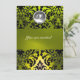 BLACK AND YELLOW DAMASK GEM STONE MONOGRAMM EINLADUNG