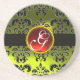 BLACK AND YELLOW DAMASK Red Ruby Monogram Sandstein Untersetzer