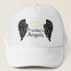 Black Engel Flügel und Halo LKW Hut mit dem Wort "Engel" in schwarzem und benutzerdefiniertem Text.
