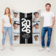 Moderne Schwarz-Weiß-Decken für sportliche Abschlüsse mit einem auffälligen Jahrgang in einem Schriftart, einer Foto-Collage des Abschlusses, zwei weißen Streifen, ihren Namen und die Schule oder Uni, die sie besucht.