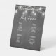 Schwarz-weißes Bar Menu Pedestal Schild für rustikale Hochzeit mit Maurerkirsche, Saitenleuchten auf schwarzer Tafel/Tafel Hintergrund. Dieses Produkt ist Teil einer Kollektion; daher Karo bitte unten unsere Kollektion für passende Artikel aus.