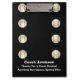 Diese Zwischenablage ist ein einzigartiges und lustiges Dankeschön-Geschenk für den Baseballteam-Coach! Der schwarze Hintergrund mit weißen Buchstaben ist sehr hell und auffallend. Es ist mit weißen Baseballs mit roten Stickereien dekoriert. Auf der Vorderseite hat der Beispieltext Platz für 3 Zeilen, die leicht modifiziert oder gelöscht werden können. Die Rückseite ist schwarz mit Baseballs und das Wort "COACH". Das Wort COACH auf der Rückseite kann leicht modifiziert oder gelöscht werden. Ihr Baseballtrainer wird es Liebe geben! Ein großes Dankeschön aus dem Team. Alle Rechte vorbehalten © 2014 Alan & Marcia Socolik.