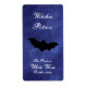 An eerie black bat in purple, violet haze, decorates this personalized wine, beer or drink label for Halloween.