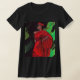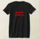 Ein schwarzes T-Shirt mit einem schönen Bild einer afrikanischen Amerikanerin, vorne von Jo-Ann Hayden gemalt. Die Worte "schwarze Schönheit" sind auf der Rückseite