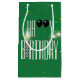 Weißer Happy Geburtstagstext auf grünem Hintergrund mit Konfetti, Kerze, schwarzen Ballons und Funkeln. Die Hintergrundfarbe kann geändert werden.