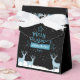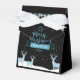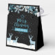 Packen Sie Ihre Geschenke stilvoll mit dieser schönen Gunst Box. Es enthält die Worte Frohe Weihnachten & Glückliches Neues Jahr zusammen mit Silhouetten von Rentieren und Schneeflocken in blauer Farbe vor schwarzem Hintergrund. Die ideale Touch für Ihre Geschenke.