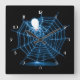 Black & Blue Halloween Spider Web Quadratische Wanduhr