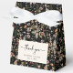 Black Boho Vielen Dank, dass Sie Boxen. Diese bedankte Box im Zeltstil verleiht Ihren Gastgeschenke Hochzeiten Charme und Charakter. Es wurde in der Moody Black Boho Wildblumen Collection entworfen und bietet handillustrierte Blüten und rustikales Laub in einer Palette von Terrakotta, verbrannten Orange, Bräune, Braun und Rost, alles Set vor einem dramatischen, moody schwarzen Hintergrund. Die Zeltform verleiht Ihrem Tisch Dimension und visuelles Interesse und behalte Ihre Lieblinge stilvoll eingeschlossen. Lass deine Dankesgeschenke und sprich Bände - gestalte heute deine perfekte Gunst-Box.