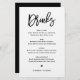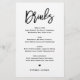 Fügen Sie diese individuell anpassbaren Getränke-Menükarte Papier zu Ihrem Event-Tischdecke hinzu. Es zeichnet sich durch moderne Kalligraphie und einfache Typografie in schwarz aus. Diese moderne Kalligraphie-Bar-Karte eignet sich ideal für Hochzeiten, Brautpartys, Babyduschen und vieles mehr.