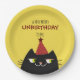 Black Booo The Cat , Cartoon Doodle Funny Geburtstag Papier Platte. Trendy, lebendig, einfach, einzigartig.