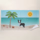 Black Boston Terrier an einem tropischen Sommerstr Strandtuch