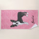Black Boston Terrier Hund auf rosa Herzen und Name Strandtuch