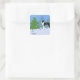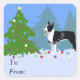 Black Boston Terrier im Weihnachtswald Quadratischer Aufkleber