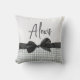Ein schlichter schwarzer Bogen auf weich-weiß-grauem Gingham-Muster mit individuelle Name. Der Name kann geändert oder gelöscht werden.